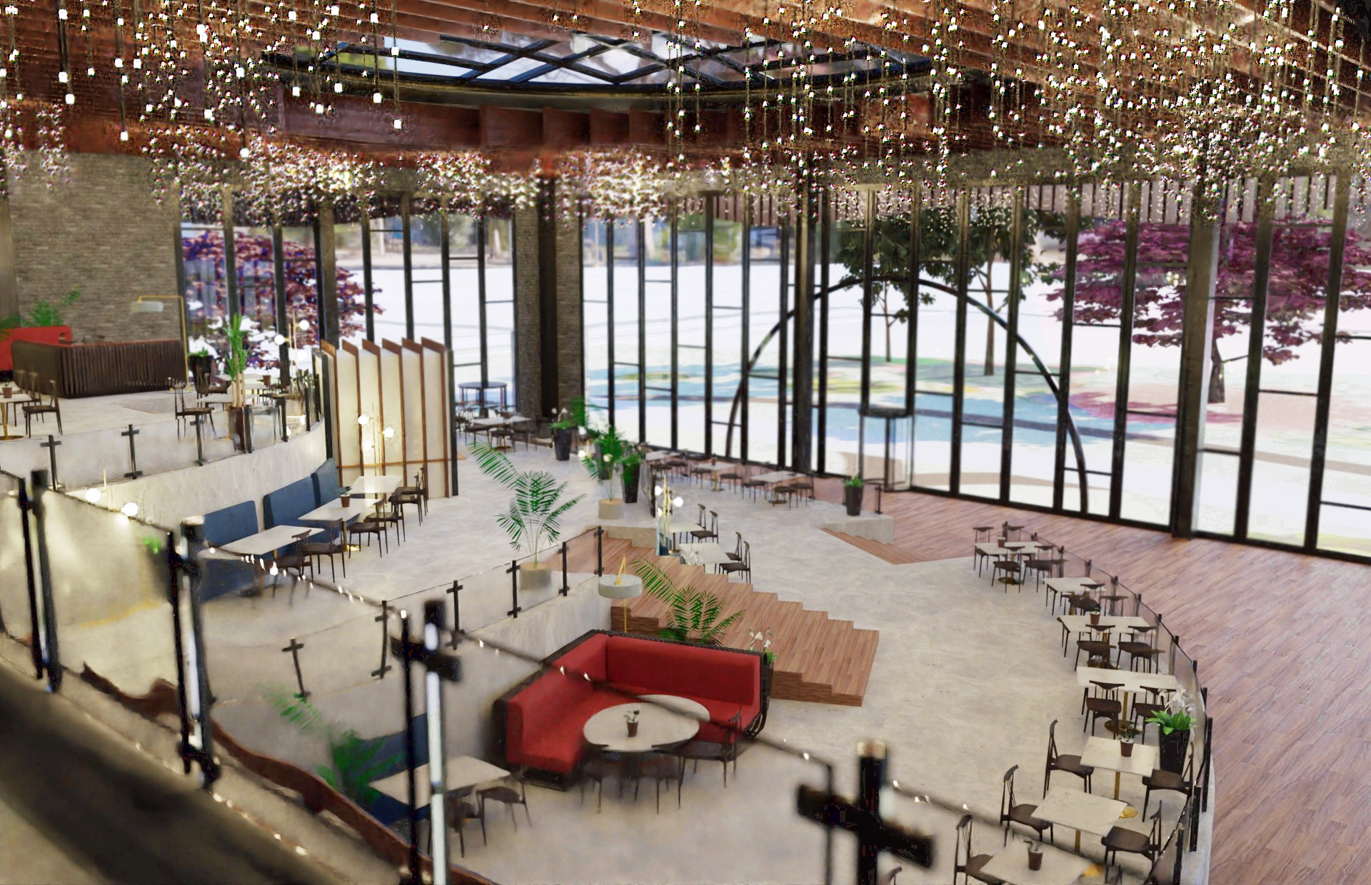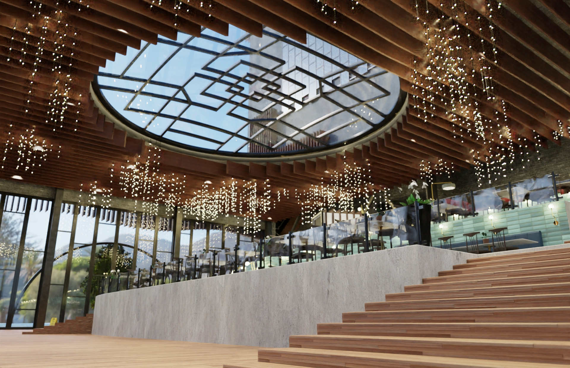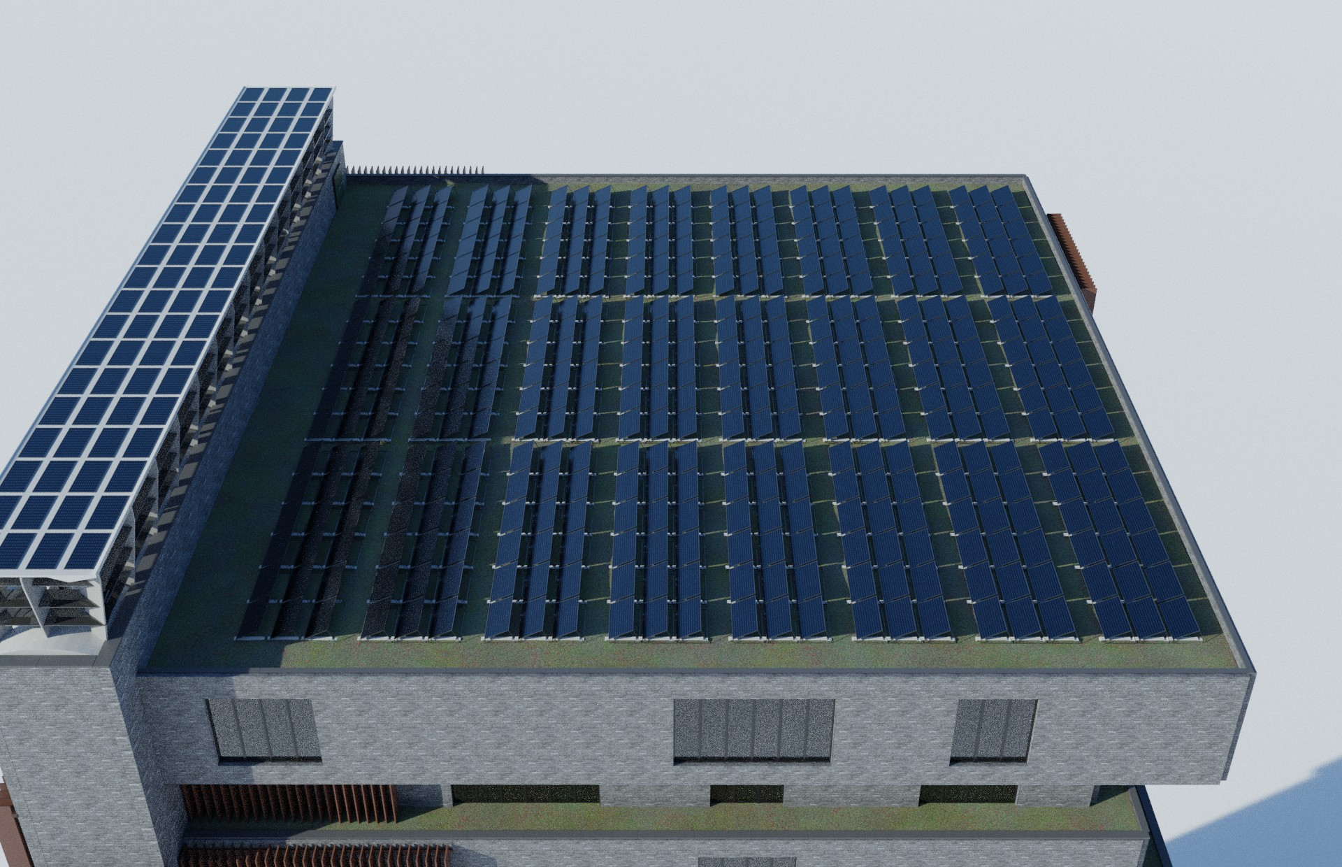 To make sure our production is as sustainable as possible, we have emphasised circularity in our design. For example, the tomatoes grown in the greenhouse will be immediately used for cooking a Cantonese-based meal in one of our food courts. The various meals will be offered in different price ranges to make sure people with different incomes are able to enjoy our food. The waste from the cooking process will be decomposed and used to produce biogas, which will fuel the methane energy system. Furthermore, we will produce our own wind, water and solar energy. One side of our building is therefore completely covered with solar panels, a total of 3882 to be precise!